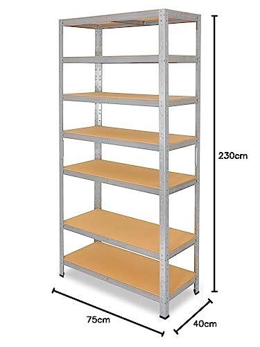 shelfplaza® 230x75x40cm HOME Schwerlastregal verzinkt/Metallregal mit 7 Böden/Kellerregal Metall, Garagenregal, Werkstattregal oder Regal Lagerregal/Steckregal Metall mit 125kg Tragkraft