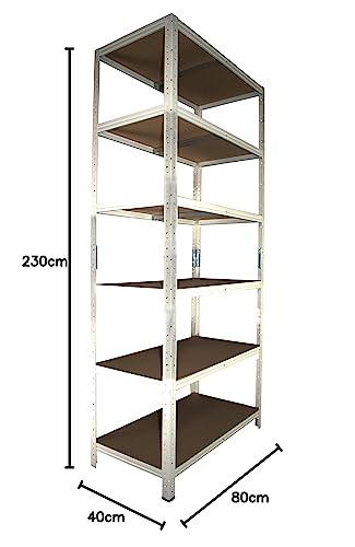 SCHWERLAST REGALE – Ob im Vorratsraum, als Garagen-Ordnungssysteme oder als Metall Regal im Keller – unser shelfplaza HOME Schwerlastregal als Metallregal mit 6 HDF Böden schafft Ordnung & System. (Maße 230 cm hoch x 80 cm breit x 40 cm tief)