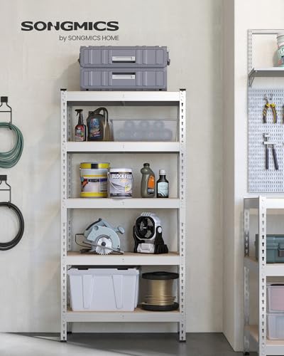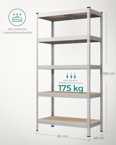 SONGMICS Schnelle Montage, Schwerlastregal, Standregal, Lagerregal, Küchenregal, Regal, 5 Ablagen, 45 x 90 x 180 cm, bis 875 kg belastbar, für Keller, Küche, Arbeitszimmer, silbern GLR450E01