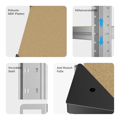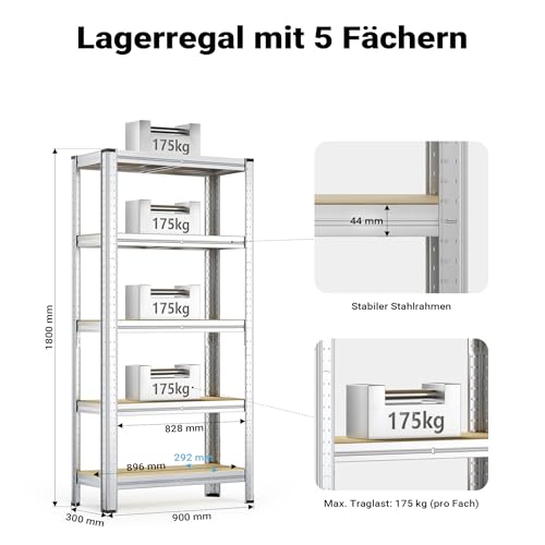 [Effizientes Raummanagement] – Mit dem Schwerlastregal schaffen Sie schnell Ordnung in Keller, Werkstatt, Lagerraum und Garage. Das 5-Ablagen-Design ermöglicht strukturierte Aufbewahrung