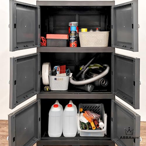[Robuste Konstruktion] Mit den Maßen 68 x 48 x 176 cm bietet der Schrank 4 stabile Fächer (20 kg je Fach) und eine große Kapazität von 512L Stauraum (128L je Fach). Der Schrank ist groß genug, um all Ihre Dinge zu verstauen – ein Organisationswunder, was mehr kann als es auf den ersten Blick erscheint!;[Neuste Technik] Die Türen sind mit einem neuartigen Arretierungsmechanismus ausgestattet, wodurch auch bei häufiger Nutzung ein einwandfreies Schließen der Türen garantiert ist.;[Einfache Pflege] Der Umwelt zuliebe aus hochwertigem recyceltem Polypropylen hergestellt, das sowohl wasserabweisend als auch leicht zu reinigen ist. Die clevere Lösung für minimalen Aufwand.;[Schnelle und einfache Montage] Durch unser einfaches aber stabiles Stecksystem ist der kinderleichte Aufbau innerhalb kürzester Zeit erledigt. Ein Schrank wie ein Superheld!;[Ein Schrank, viele Möglichkeiten] Perfekt kombinierbar mit anderen Produkten der Marke ABBAware, wie beispielsweise unseren separat erhältlichen Schuhboxen.