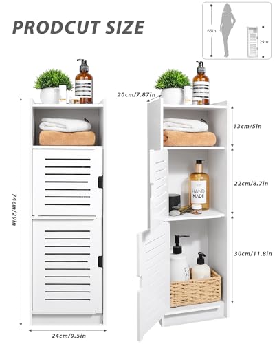 【Große Speicherkapazität】 74 x 20 x 24 cm (H x B x T), dieser Badezimmerschrank bietet zusätzlichen Platz, um Ihre täglichen Utensilien aufzubewahren und Ihr Badezimmer ordentlich und organisiert zu halten.