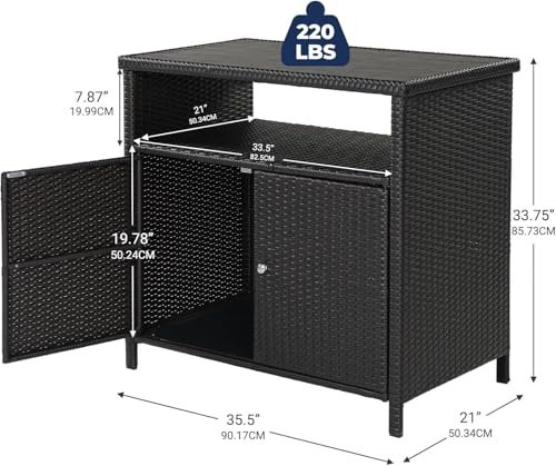 Grand patio Sideboard, BBQ Beistelltisch, Küchenschrank, 90x 85 x 50 cm, mit Doppeltüren, Gartenschrank Rattan für Garten, Terrasse, Wohnzimmer, Kaffeebraun