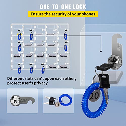 VEVOR Handy-Aufbewahrungsspind, 20 Fächer aus Acrylmaterial mit Türschlössern und Schlüsseln, Wandmontierter Schrank, Taschenbüro, Klassenzimmer, Fitnessstudio, Box, Transparent