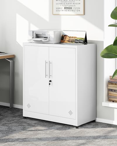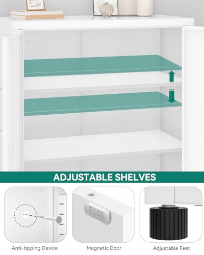 YITAHOME 2-türige Aufbewahrungsschränke, Metall-Aktenschränke mit Schlüssel, Aufbewahrungsschrank mit 2 verstellbaren Regalen, Badezimmer-Organisationsschrank, Aktenschränke für Home Office, Weiß