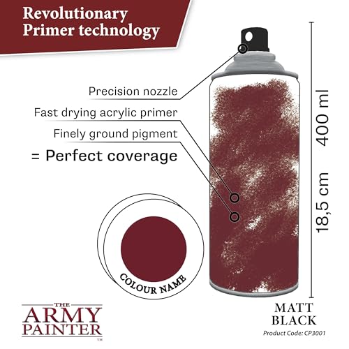 The Army Painter, Colour Primer Matt Black, 400 ml Grundierung Spray Matt Schwarz – Acryllack Spray für Fantasy Modellbau Wargames Tabletop Figuren, Warhammer & Dnd Miniatures