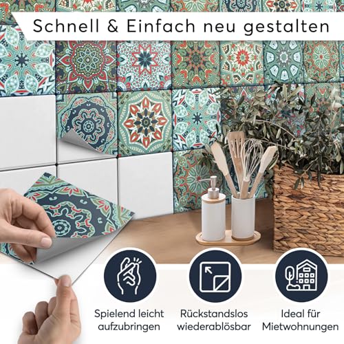 CREATISTO Fliesenaufkleber Fliesenfolie Mosaikfliesen – Aufkleber Sticker für Wandfliesen I Klebefliesen Deko Folie für Fliesen in Küche u. Bad/Badezimmer (10×10 cm I 9 -Teilig)