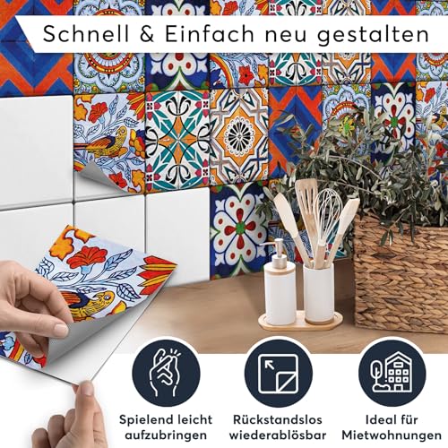 CREATISTO Mosaik-Fliesen Fliesensticker Fliesenfolie – Klebefolie Aufkleber für Wand-Fliesen I Klebefliesen Deko Folien für Fliesen Ornament in Bad u. Küche (15×20 cm I 12 -Teilig)
