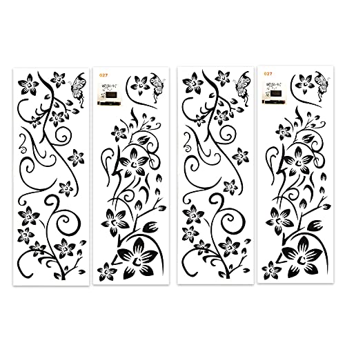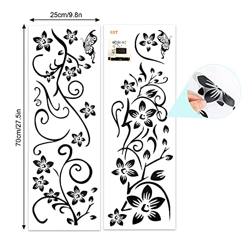 2 Stück Schwarz Wandtattoo Ornamente set für Wanddeko, Blumen Ranke Schmetterlinge Pflanzen Rebe Wandsticker Wandaufkleber Kleben Aufkleber Wandbilder für Wohnzimmer Schlafzimmer Vorraum Flur Fenster