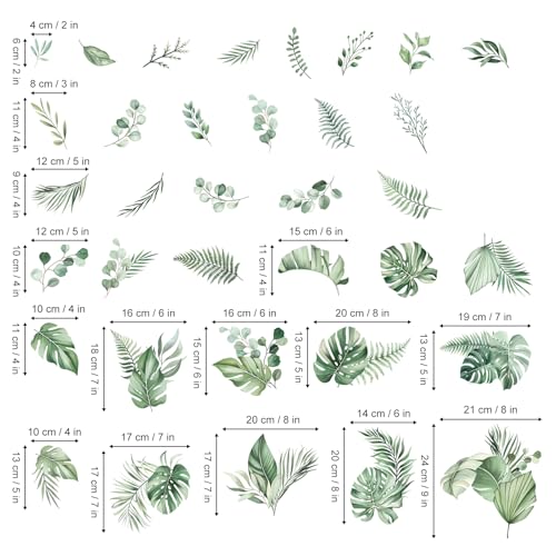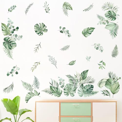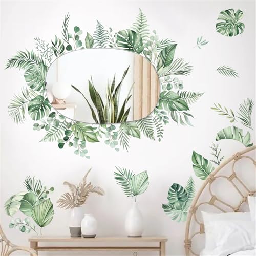 decalmile Wandsticker Palmblatt Blätter Wandtatto Eukalyptus Tropische Blätter Pflanzen Palme Grün Wandaufkleber Schlafzimmer Wohnzimmer Büro Wanddeko