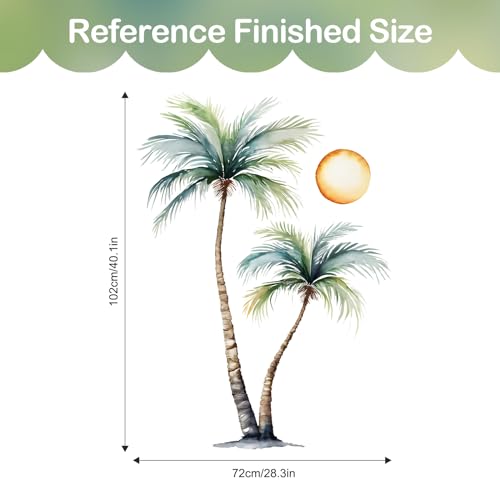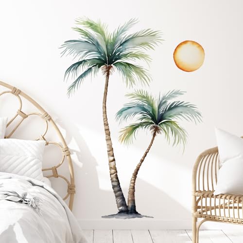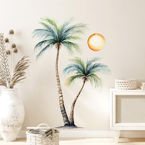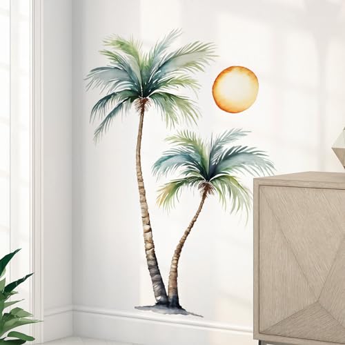 Tanlaby Wandtattoo Palme Groß Baum Wandaufkleber Aquarell Palmen Tropische Pflanzen Wandsticker Sonne Kokosnussbaum für Wohnzimmer Schlafzimmer Flur Bad Wanddeko