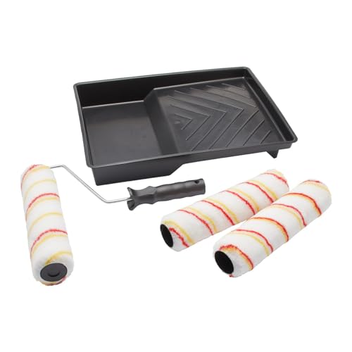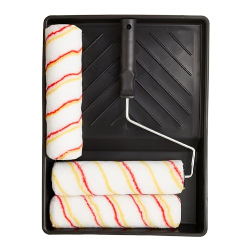 5-teiliges 225-mm-Farbroller- und Schalenset für glatten Abschluss beim Streichen von Innenwänden und -decken – 3 Walzen, ideal als Raumprojektpaket zum Streichen von Kontrastfarben, ohne dass die Walzen während der Arbeit ausgewaschen werden müssen