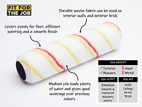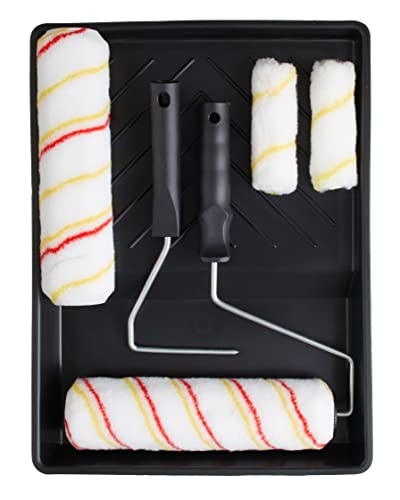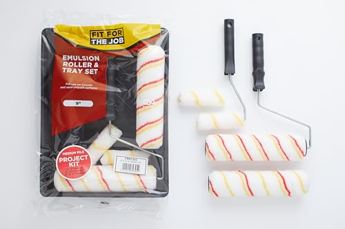 Fit For The Job Dispersionsfarbroller-Set, 2x 225 mm und 2x Mini-Farbroller, Rahmen und Farbwanne, mittelgroße Farbwalzenhülsen für Heimwerker mit Dispersionsfarben an Wänden und Decken