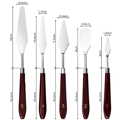 Fousenuk 5 Stücke Edelstahl Malmesser für Acrylfarben, Spachtel Acrylmalerei, Palettenmesser, Malspachtel Acryl, Palette Messer, Farbspachtel, Malzubehör zum Ölgemälde, Gouache, Aquarell, Felsmalerei