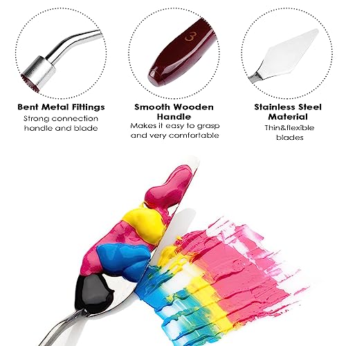 【Ausgezeichnetes Material】 Das spachtel acrylmalerei aus einer Klinge aus rostfreiem Stahl und einem Griff aus Massivholz, keine scharfen Kanten, ist leicht und leicht zu greifen, die flexible, aber starke Klinge ist nicht leicht zu brechen oder zu verformen, gute Elastizität, verschleißfest und korrosionsbeständig. beständig. Starke Metallschnalle, um ein Herunterfallen der Klinge zu verhindern.