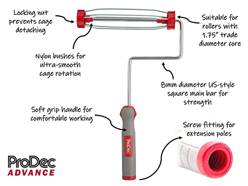 ProDec 225 mm x 44 mm weicher Griff, robuster, professioneller Farbrollerrahmen mit Schraubbefestigung für Verlängerungsstangen
