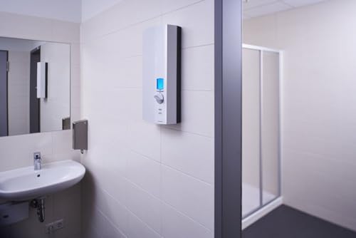 KOMFORTABLE BEDIENUNG: Stufenlose Temperatureinstellung mit zweifarbigem LC-Display und Drehknopf, Komfortfunktionen, Wellnessprogramm, 2 programmierbare Speichertasten, Anzeige von Temperatur, Durchflussmenge, Energieverbrauch, Uhrzeit, wählbare Leistung 18, 21 bzw. 24 kW (3 Geräte in 1)