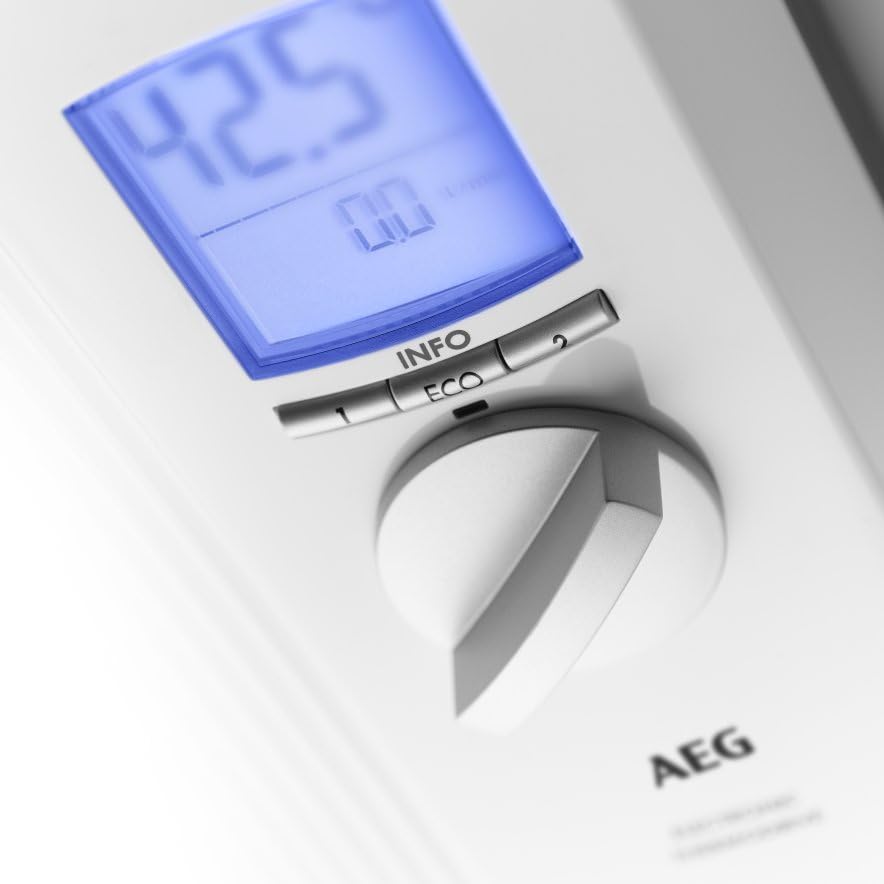 AEG vollelektronischer Durchlauferhitzer DDLE ÖKO TD 18/21/24 kW umschaltbar, LC-Display, ECO-Funktion, Regendusche, Festanschluss 400V, VDE geprüft, 222398