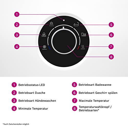 Einfache Bedienung: Stufenlose Temperatureinstellung über das Bedienfeld mit Drehknopf und 6 Warmwasserprogrammen. Internetfähigkeit nachrüstbar.