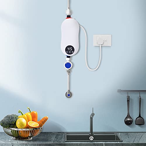 BRRIDE Elektro Durchlauferhitzer Klein, 5500W 220V Tankless Mini Instant Elektro Wassererhitzer für Küche Bad, Tragbarer Niederdruck Dusche Warmwasserbereiter mit LED-Anzeige (Standardsatz)
