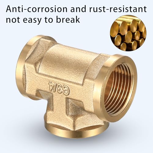 2 Stück – Messing-T-Stück 90° G3/4 Zoll (Durchmesser 24 mm) IG/IG/IG