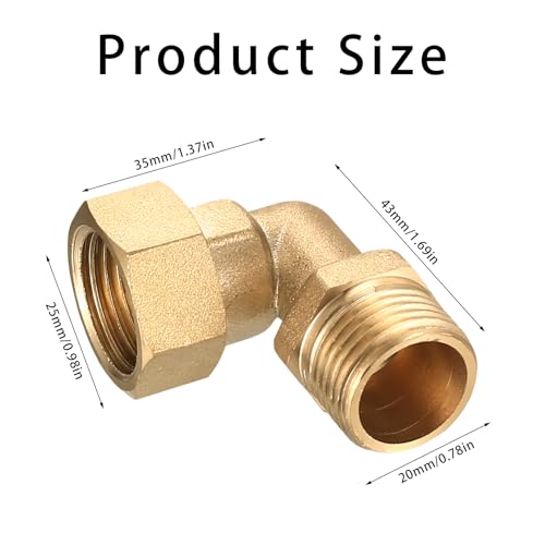 2 STK Messing Beweglich Verschraubung, 1/2 Zoll Winkel 90 Grad 1/2 Zoll 90 Grad Winkel für Wasserschlauch Verbinder, Messing Fittings, Schlauchverschraubung, 90° Messing Blank
