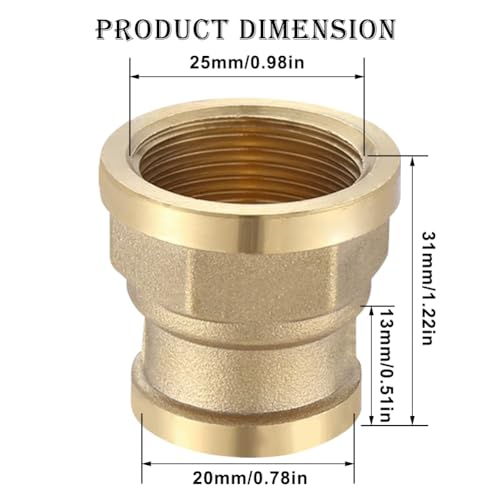 【LIEFERUMFANG】: Sie erhalten 2 Stück Messing Reduziermuffe, 3/4″ Innengewinde x 1/2″ Innengewinde, bitte prüfen Sie die Maße vor dem Kauf
