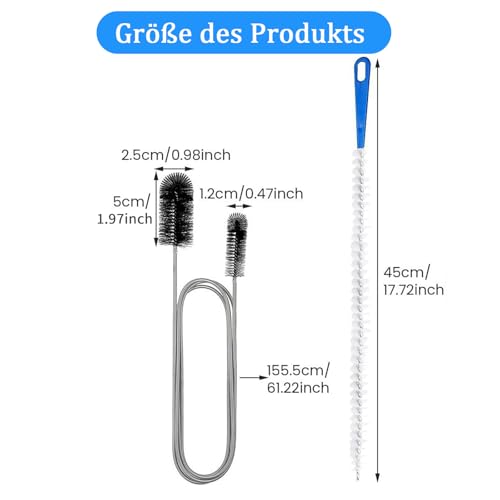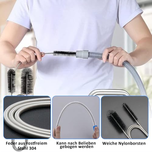 Das Paket beinhaltet:2 Stück in einer Packung, 1 Stück Doppelkopf-Rohrreinigungsbürste(155cm)+ 1 Stück Kunststoff-rohrreinigungsbürste(45cm). Das Kit ist für viele verschiedene Rohrgrößen geeignet, um Ihren täglichen Bedarf zu decken