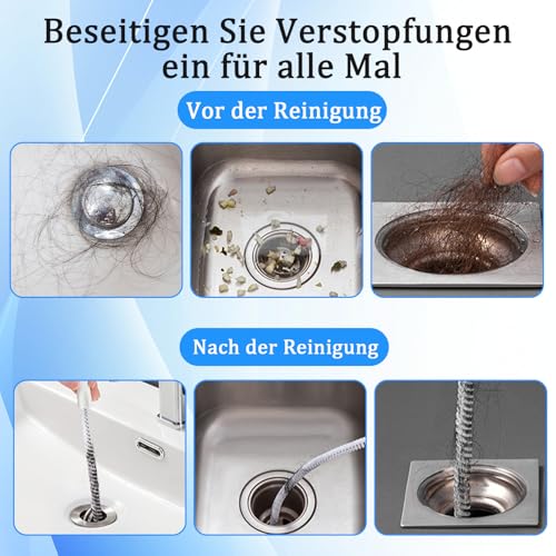 Breite Verwendung: Diese einzigartige Kombination von rohrreiniger spirale ist eine ideale Wahl für Haushaltsspülen, z. B. für Küche, Bad, Badewanne, Dusche und Waschbecken.Bringen Sie sie also nach Hause und erhalten Sie schnelle Linderung Ihrer Entwässerungsprobleme.