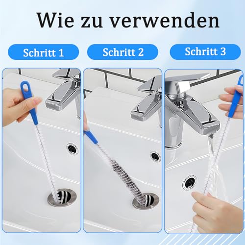 Effektive Abflussbürstenkombination: Diese abflussreiniger bürste sind sehr effektiv bei der routinemäßigen Wartung und Reinigung von Abflüssen und können zum Reinigen von engen Rohren verwendet werden, die schwer zu erreichen sind. Entfernen Sie hartnäckige Verstopfungen, Haare und Schmutz leicht.