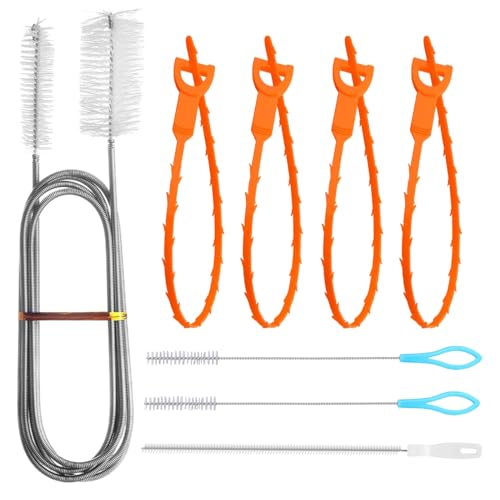 FIHODONE 8 Stück Abflussbürste, Abflussreiniger Rohrreinigungsbürste, Flexible Abflussbürste mit Zwei Enden, Extra Lange Rohrreinigungsspirale, Spirale Abfluss Rohrreinigung für Toiletten Badewannen