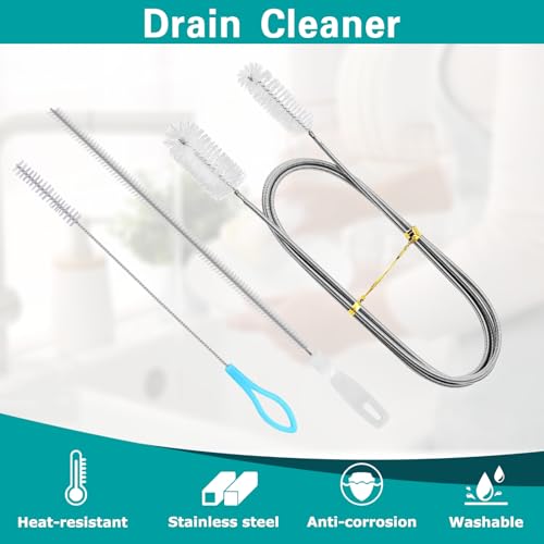 【Einzigartiges Design】155cm Doppelkopf Einlass und Auslass flexible rohrreinigungsspirale, verlängertes Modell biegsamen Rohr unclogger abfluss, Flexible Nylonborsten Bürste, bietet eine größere Reichweite und höhere Effizienz während des Reinigungsprozesses, in der Lage, das Rohr gründlich zu reinigen, ohne die Innenwand des Rohres zu beschädigen.
