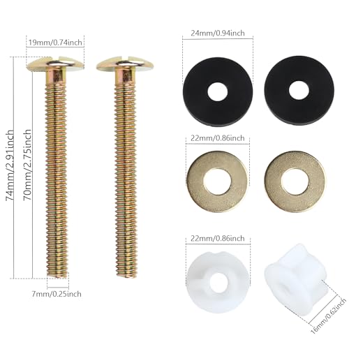 【Material】: Die Schraubenstange und die Unterlegscheibe des Toilettensitzes sind aus robustem Kohlenstoffstahl gefertigt und mit buntem Zink beschichtet. Die Mutter besteht aus POM-Kunststoff und der Dichtungsring aus Gummi.