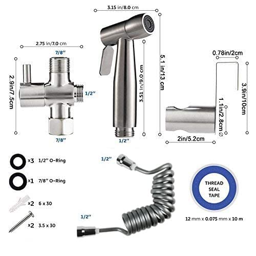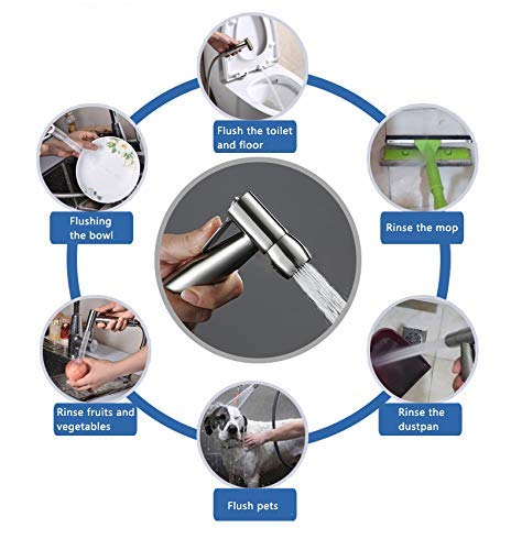 Material: Das Mobile Bidet Spray Kombination ist aus hochwertigem Edelstahl Material, so dass Sie leicht und bequem greifen und bedienen. Der präzise Oberfläche sorgt für Rostschutz und Schutz vor Korrosion. Besser als Papier Hygiene zu helfen Gesundheit Probleme lösen, keine Leckagen, kein Splash, hohe Druck, vermeiden Strahlen.