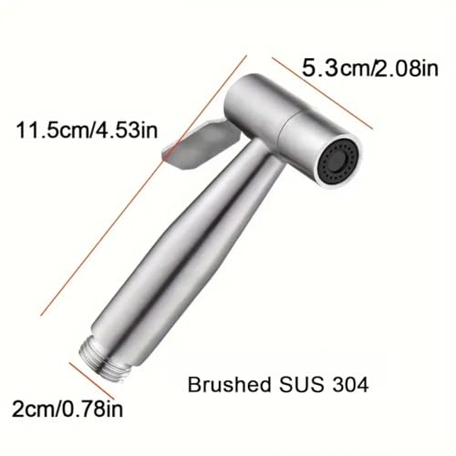 Spezifikationen Name: Bidet-Sprüher für Toilette, Material: Edelstahl, Paketmaße: 16 x 11,9 x 4,8 cm, Artikelgewicht: 0,3 kg, Länge des Schlauchs: 198,1 cm, Besonderheiten: horizontaler Sprühgebrauch: Bidet, Spülen, Reinigung, Windelsprüher, Waschen, Damenhygiene