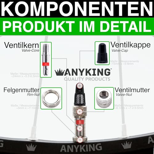 PRO KOMPLETT-SET beinhaltet: 4x Fahrradventil-Einsatz + 4x Ventilkappen + 4x Überwurfmutter + 4x Felgenmutter