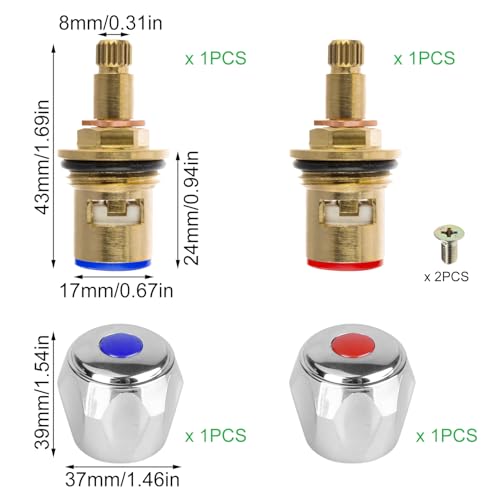 Wasserhahn-Ventil-Kit, Robust und Einfach zu Bedienen, Wasserhahn Ventiloberteil Set mit Ventileinsätzen und Schrauben, Wasserhahn Ventile Armaturen, für Küche, Bad, Waschbecken (Messing + Silber)