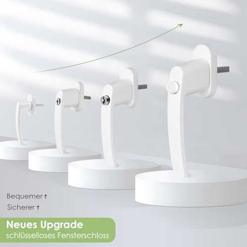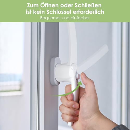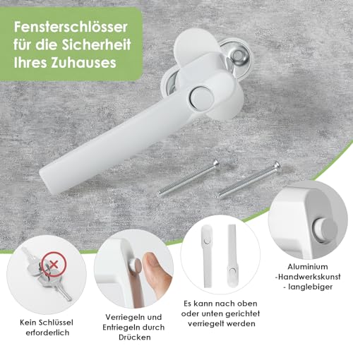 【Schlüssellose Fensterschlösser】Keine weiteren Schlüssel erforderlich. Sie müssen lediglich den Knopf gedrückt halten und drehen, um das Fenster zu verriegeln. Die 360-Grad-Drehung mit mehreren Fensterverriegelungspositionen bietet zusätzliche Sicherheit und verhindert, dass Kinder den Griff erreichen und öffnen.