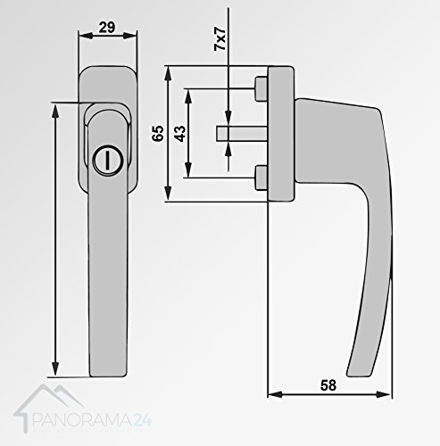 Vierkantstift: ca. 7 x 7 mm, Schraubenabstand: ca. 43 mm, Ideal als Kinderschutz