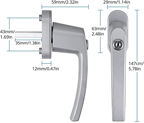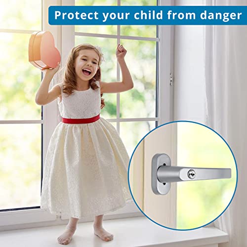 AUTOUTLET Fenstergriffe abschließbar, 2pcs Fenstersicherung Kinder Fensterschloss Aluminium in Stiftlänge 35mm, abschliessbarer Fenstergriff mit 4 Schlüsseln für Fenstertür Balkontür usw(Grau)