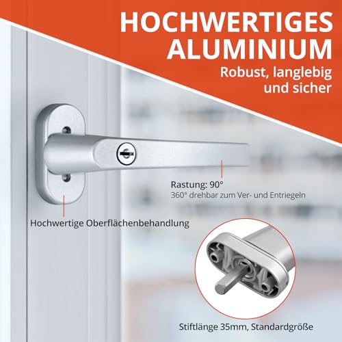 GETLITOOL Fenstergriffe Abschließbar, 2 Stück Fensterschloss Aluminium mit Schlüsseln, Sicherheitsfenstergriff in Stiftlänge 35mm, Kindersicherung Fenstersicherung für Fenstertür Heimsicherheit-Grau