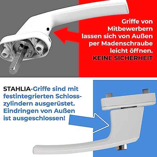 ⏺ 𝙇𝙄𝙀𝙁𝙀𝙍𝙐𝙈𝙁𝘼𝙉𝙂 | 8x abschließbarer Fenstergriff (inkl. 2 Schlüssel pro Griff), 8x Schraubenset (2 Stück M5 x 45 Millimeter Montageschrauben pro Griff) & 8x Vierkant (im Griff integriert). Was Stahlia Service auszeichnet: ✔unser Versandteam bearbeitet die Aufträge taggleich ✔ schnelle Bearbeitung von Anfragen ✔ Rechnung mit ausgewiesener MwSt. ✔ Stahlia kommt aus Baden – Württemberg