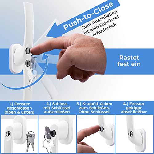 ⏺ 𝙐𝙉𝙄𝙑𝙀𝙍𝙎𝙀𝙇𝙇𝙀𝙎 𝙁𝙀𝙉𝙎𝙏𝙀𝙍𝙎𝘾𝙃𝙇𝙊𝙎𝙎 | Unsere Fenstergriffe abschliessbar sind gleichschließend. Das bedeutet, dass ein Schlüssel für alle Griffe verwendet werden kann. Je Fenstergriff werden zwei Schlüssel und passende Schrauben mitgeliefert. Daher ist eine schnelle und einfache Installation garantiert.