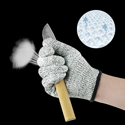 【Hochwertige Materialien】 Die schnittfesten Handschuhe bestehen aus einer Mischung aus ultrahochpolymerem PE, Glasfaser, Spandex und Baumwolle, die langlebig und reißfest ist und einen Schnittschutz der Stufe 5 bietet, wodurch das Risiko von Schnittverletzungen verringert wird schwere Verletzung.