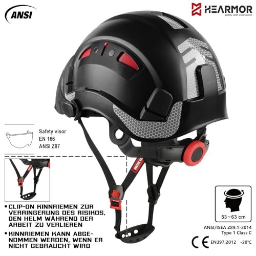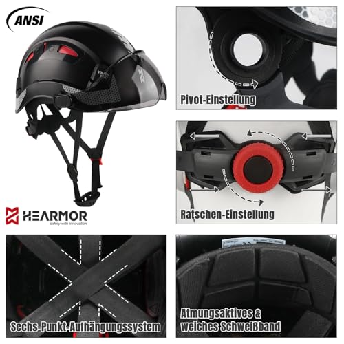 【Ideal for head protection】HEARMOR helmets are made of highly impact penetrating ABS material for durability and protection. The visor ensures that the wearer’s eyes are protected from potential hazards. The perfect combination of durability and protection makes this helmet ideal for construction, tree climbing work, woodworking, mechanics, forestry, manufacturing, height and scaffolding work and any other industry where head protection is required.