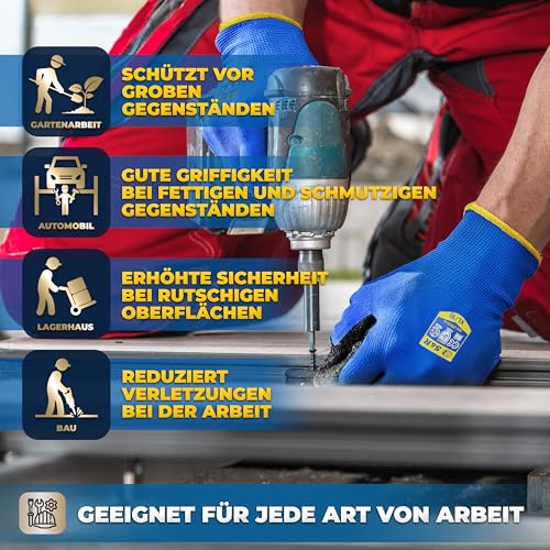 S&R Arbeits- und Schutzhandschuhe aus Nylonfaser mit Latexbeschichtung – Reißfest, Abriebfest und Flexibel für Arbeit, Handwerk, Garten und Heimwerker – 12 Paar – XXL/10