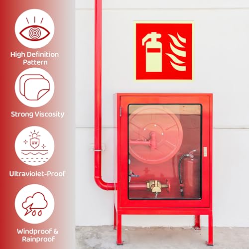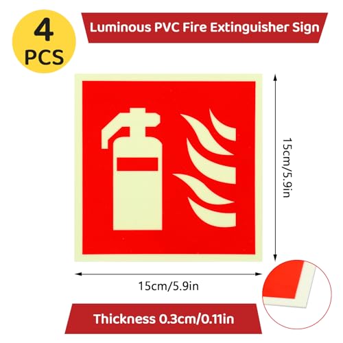 4 Stück Selbstklebend Feuerlöscher Schild, PVC Nachleuchtend Feuerlöscher Aufkleber, Hinweisschilder Feuerlöscher 15 x 15cm, Piktogramm Feuerlöscher für Haus, Büro, Krankenhaus