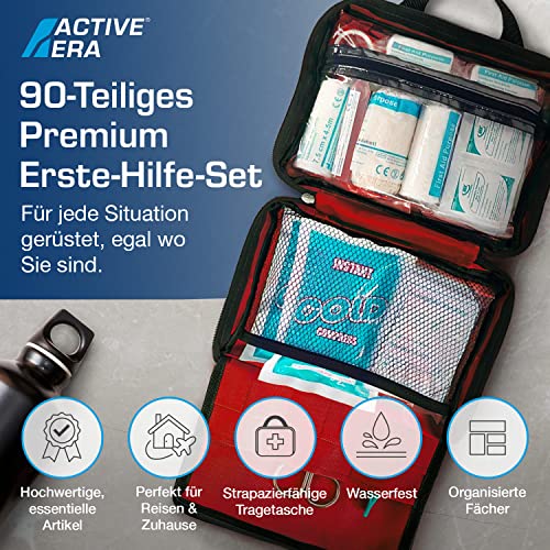 Active Era Erste Hilfe Set, 90-teilige Premium Erste Hilfe Tasche – Verbandskasten inkl. Sofort Kühlpacks, Augenspülung, Verbandsmaterial, Rettungsdecke für Zuhause, Büro – First Aid Kit ISO 13485