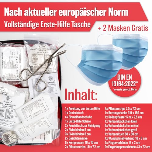 SICHERHEIT & SCHUTZ – Dank mehrsprachig bebilderter Anleitung für den Erste Hilfe Ernstfall und sauberer Sortierung der Verbandsmaterialien ist man immer bestens vorbereitet. Inkl. 2x Mundschutzmaske für maximalen Schutz.