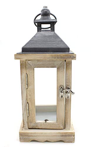 DARO DEKO Holz Laterne mit Echt-Glas Scheiben braun schwarz 10cm x 10cm x 25cm
